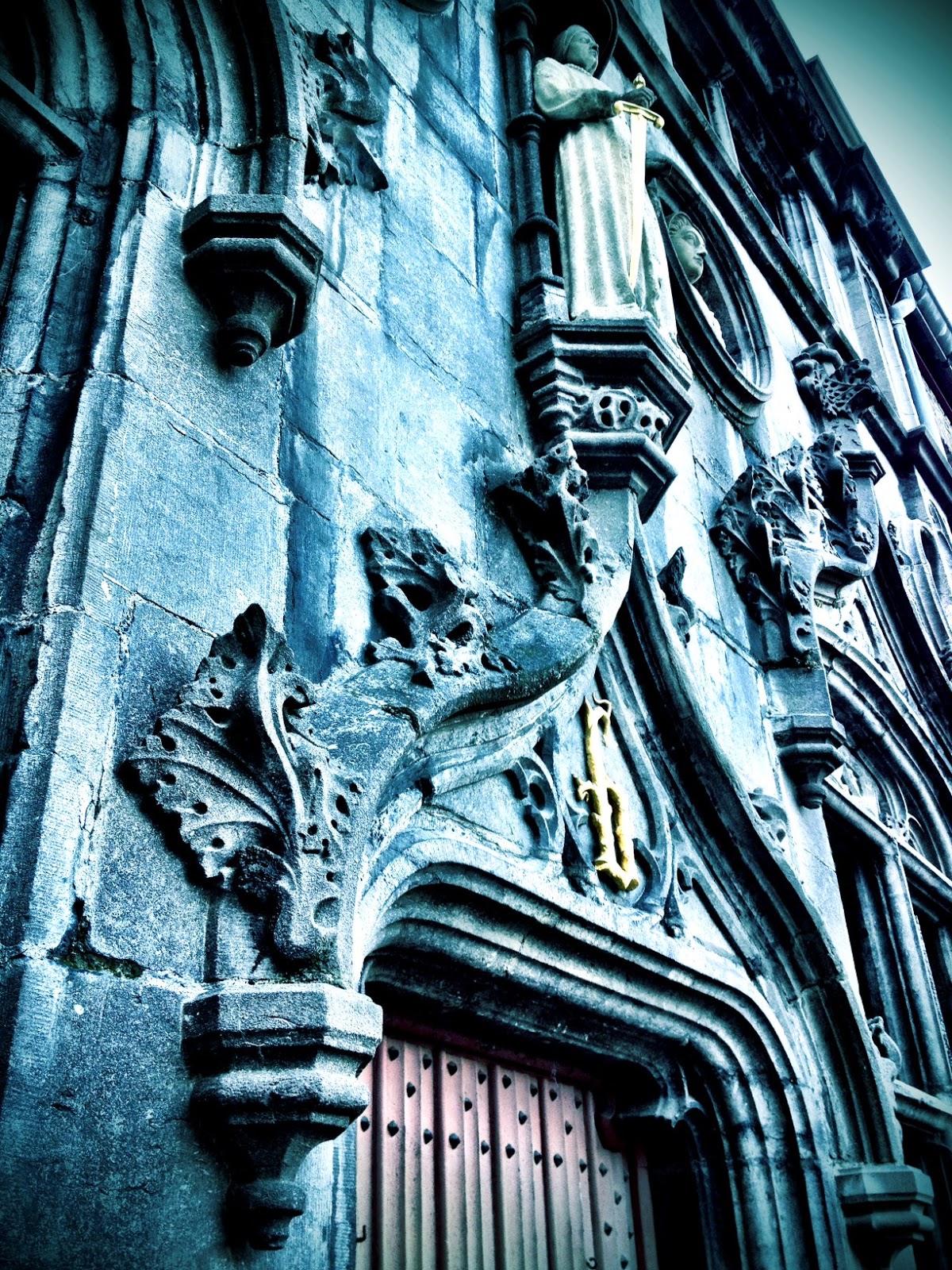 We began this auspicious day with a 10 AM walking tour of Bruges. My words cannot properly describe such a city that is steeped in history, art, architecture and commerce. I love Bruges, and want to go back already. Every turn brings a new building covered with Gothic spires, ornate ironwork, marble statues. Gargoyles peer down at you with stony glares and lewd expressions. Bears (the symbol of the city,) Madonnas and saints adorn walls, building corners, and pedestals all over the city. I took nearly 50 pictures of different doors and iron grates. Enormous cathedrals drip with gold, incredible stained glass, intricate and overwhelming woodwork, and religious splendor. Cobbled streets echo with footsteps and horse drawn carriages clatter past. It really is a fairy tale city, especially in the morning before the crowds and cars really get rolling. Shallow, but picturesque canals wind through the city, with tourist boats, ducks and huge white swans all zipping along them happily.